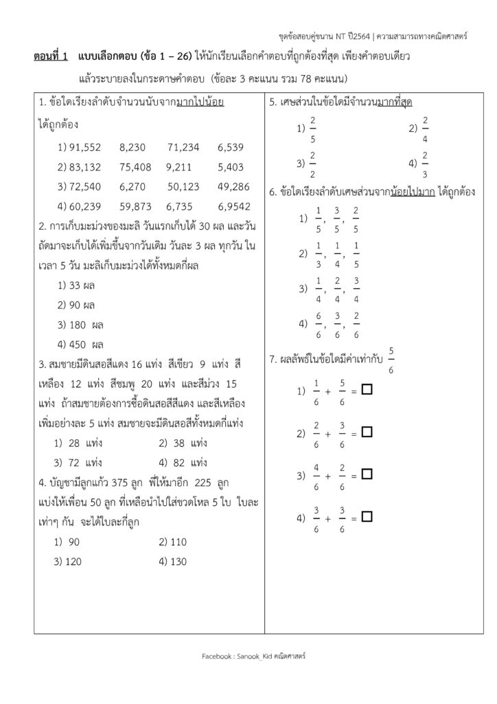 🚩ชุดข้อสอบคู่ขนาน NT คณิต ป.3(ชุดที่5)